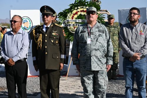 Ascensión.- En representación de la alcaldesa, Lic. Ivonne De la Hoya Venzor, acudió el Secretario del H. Ayuntamiento, Sergio González Sarabia acompañado del Ing. Daniel Hirám Payán Ramírez, Director de Cultura, Educación y Turismo, a las instalaciones de la Guarnición Militar de Puerto Palomas de Villa al acto de conmemoración del CLXXVII Aniversario de la Gesta Heroica de la batalla de Chapultepec, evento encabezado por el General Brigadier D.E.M. Rubén Torres Martínez, Comandante de la Guarnición Militar, contando en el presídium con la presencia del Presidente Seccional, José Sánchez Adame, el Coronel, Ing. en Transmisiones Militares retirado, Octavio Otton López Pérez, Administrador de la Aduana Mexicana en Puerto Palomas de Villa además de algunos invitados especiales.