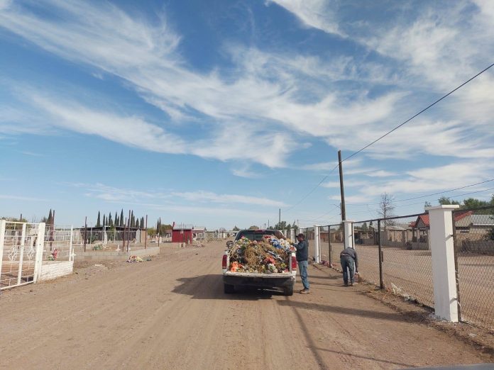 Ascensión.- El gobierno municipal encabezado por la alcaldesa, Lic. Ivonne De La Hoya Venzor, a través del departamento de servicios públicos dirigido por el Ing. Juan Porras Cárdenas y el subdirector, Lic. Lorenzo Matancillas, con las cuadrillas de personal a su cargo, continúan los trabajos de mantenimiento al lugar que en próximos días será el sitio más visitado por la ciudadanía, el panteón, los trabajos realizados es limpieza general, recogiendo toda la basura que se encuentra en el interior, rehabilitando las pilas donde se almacenará agua, los servicios sanitarios, el acceso a las lápidas, pintando la letras, encalando los árboles y la barda perimetral, para que el “Día de Muertos” la gente que nos vista del municipio y de otras localidades tengan una buena imagen del camposanto.