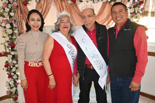 Posteriormente, se realizó la coronación de los nuevos monarcas del Club Hilos de Oro, quedando como Rey y Reina para el periodo 2025 el señor José Ramón Chávez y la señora Miriam Solís. En su mensaje, la nueva soberana agradeció la distinción y aseguró que junto a su compañero estará presente en los eventos en los que se les requiera.