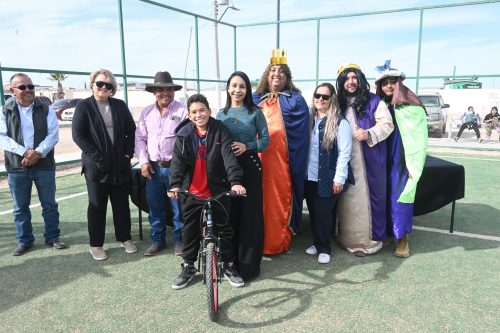 Como parte del festejo, la Presidenta Municipal y su equipo de colaboradores repartieron rosca y chocolate caliente a todos los asistentes, quienes además disfrutaron del espectáculo de la payasita Lilín. A cada niña y niño se le entregó un boleto para participar en la rifa de regalos, entre los que destacaron 7 bicicletas, 2 triciclos, 2 patines y cientos de juguetes, además de diversas dinámicas y concursos que premiaron a los ganadores con obsequios. El evento contó también con la presencia de los Reyes Magos: Melchor, Gaspar y Baltazar, lo que llenó de ilusión a los más pequeños.