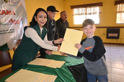 Ascensión. – La presidenta municipal, Lic. Ivonne De La Hoya Venzor, encabezó la entrega de 82 actas de doble nacionalidad en el municipio de Ascensión, sumándose a las 167 actas entregadas un día antes en la comunidad de Puerto Palomas de Villa, logrando un total de 249 trámites gratuitos realizados a través de la Secretaría del H. Ayuntamiento.