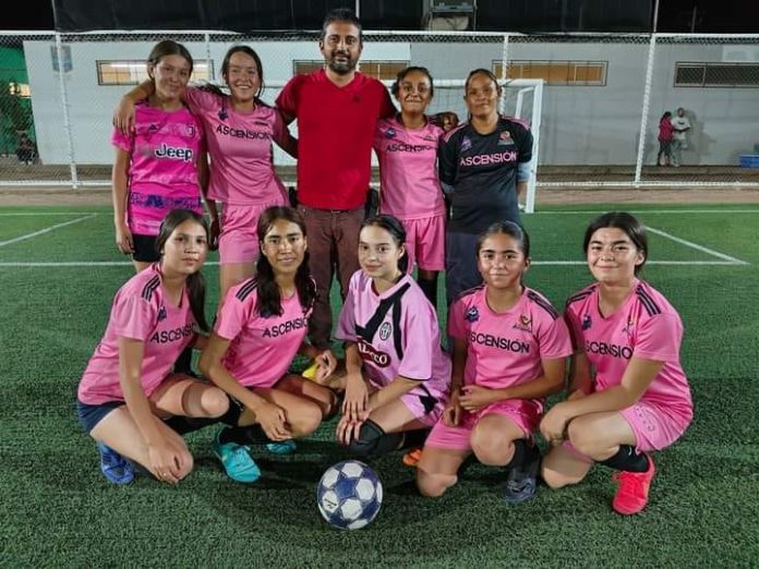 Ascensión.- El joven equipo de Ascensión, tiene actividad en la fecha número 13 del Torneo de Fútbol Siete de la Liga Leona Vicario de N.C.G. la cual dirige de gran manera Ricardo «Vampi» Ochoa, en esta ocasión las pequeñitas dirigidas por Armando Jiménez Apodaca, se enfrentaron a su rival Panteras, señalando que con el juego del pasado viernes son 93 visitas a esta prestigiosa Liga, en esta ocasión las juveniles de Ascensión ganaron su encuentro 9 goles vs 1, las anotaciones de Ascensión fueron realizadas por la juvenil  Josseline Córdova de 15 años quien anotó en tres ocasiones, Guadalupe Salazar con dos tantos, un golazo de la juvenil Casandra Coronado de 14 años y 3 goles de la más pequeña del equipo, Regina Molina Palacios, de 11 años que con estos llega a 15 anotaciones en su cuenta personal, en tan complicado torneo; este día la Capitana del juego fue la jovencita Valentina Enríquez Matancillas de 13 años quien se desempeña en todas las posiciones de la cancha, jugadora que cuenta con un gran liderazgo dentro de la campo de fútbol.