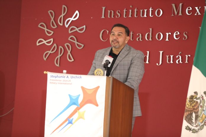 Ciudad Juárez.- El Presidente Municipal, Cruz Pérez Cuéllar, asistió como invitado especial al informe anual de actividades del Club Rotario Juárez Siglo XXI Distrito 4110, en donde además se llevó a cabo la toma de protesta de la nueva directiva 2025-2026.