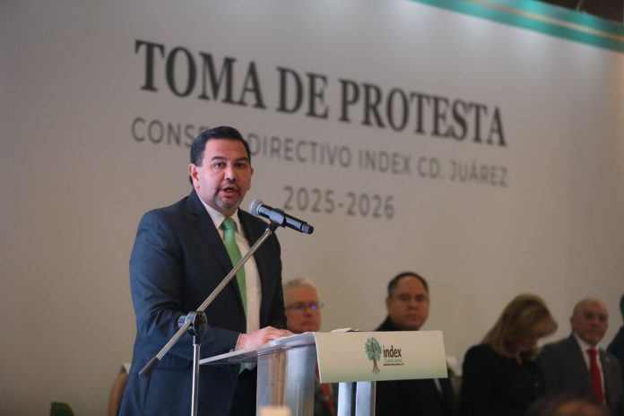 Ciudad Juárez.- En el marco de la ceremonia de toma de protesta al nuevo Consejo Directivo de Index Juárez para el ciclo 2025-2026, el Presidente Municipal, Cruz Pérez Cuéllar reiteró el apoyo de su administración para fortalecer a este pilar de la economía que es la industria manufacturera de exportación.