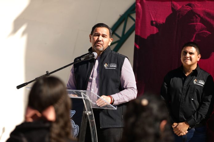 Ciudad Juárez.- El presidente municipal, Cruz Pérez Cuéllar, entregó esta mañana las obras de rehabilitación del Colegio de Bachilleres 7, entre las que destaca la construcción de un teatro acústico al aire libre.