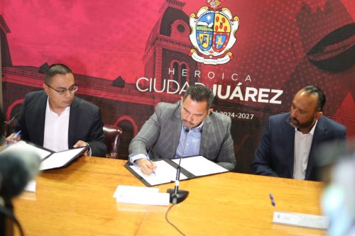 “Estamos a la orden y vamos a sacarle provecho a este convenio hecho a favor de las y los emprendedores juarenses”, dijo el Presidente Municipal, Cruz Pérez Cuéllar, quien encabezó la firma del acuerdo, acompañado del secretario del Ayuntamiento, Héctor Rafael Ortiz Orpinel y otros funcionarios municipales.