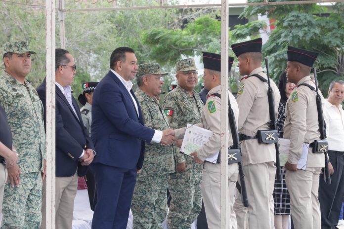 Noticias de Chihuahua.- El Presidente Municipal, Cruz Pérez Cuéllar, participó hoy en la ceremonia de entrega de cartillas liberadas del Servicio Militar Nacional a cerca de 100 jóvenes que por tres meses cumplieron con su adiestramiento en el Noveno Regimiento de Caballería Motorizado.