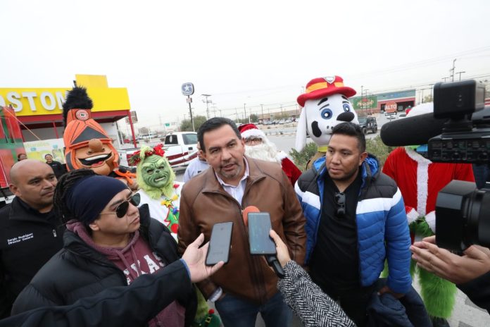 Ciudad Juárez.- El Presidente Municipal Cruz Pérez Cuéllar acudió a mostrar su apoyo a los locutores Román Vázquez y Shaon Ortiz, quienes participarán en el evento «Un Regalo de Altura». Esta iniciativa tiene como objetivo recolectar juguetes para el programa Santa Bombero, en beneficio de los niños de Ciudad Juárez.
