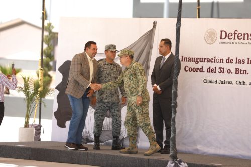 Ciudad Juárez.- El Presidente Municipal, Cruz Pérez Cuéllar, acudió a la inauguración de las instalaciones de la Coordinación del 31 Batallón 377 Compañía de la Guardia Nacional.