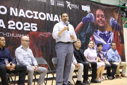 Ciudad Juárez.- El Presidente Municipal, Cruz Pérez Cuéllar, encabezó la ceremonia de inauguración del Campeonato Nacional de Artes Marciales Mixtas 2025, evento que reúne a atletas de alto rendimiento provenientes de 25 estados del país.