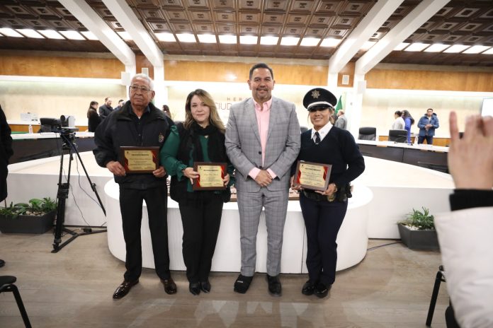 “Reconocemos a Raúl de los Santos Ledezma, Fabiola Ivette Martínez Romero y Mireya Flores Alarcón; a ellos quiero agradecerles su entrega y disposición a nombre de la ciudad, porque a final de cuentas están trabajando para las y los juarenses; los exhortamos a que sigan trabajando con ese espíritu y esas ganas de servicio”, expresó.