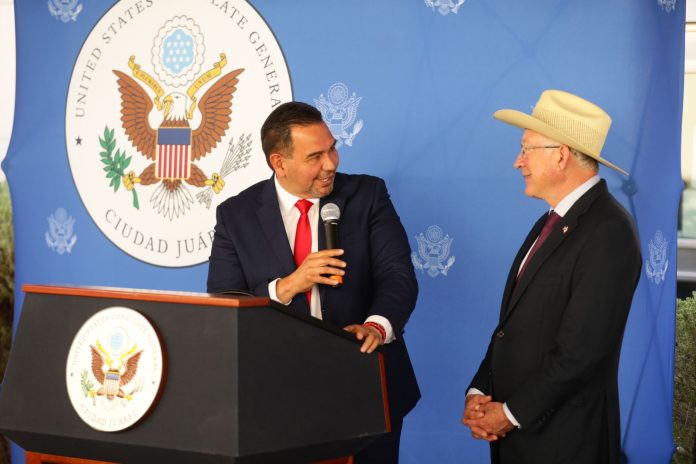 Noticias de Chihuahua.- El Presidente Municipal, Cruz Pérez Cuéllar, se reunió con el Embajador de Estados Únicos en México, Ken Salazar, poco después del mediodía de este viernes en las instalaciones del Consulado Estadounidense en esta ciudad.