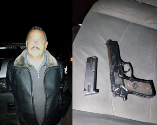 La persona detenida, de nombre Luis Fernando V. V. cargaba un arma corta calibre 9 milímetros abastecida, por lo que de inmediato se le aseguró y trasladó ante el agente del Ministerio Público para su puesta a disposición.