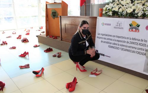Mediante esta propuesta visual creada por la artista Elina Chauvet, “Zapatos Rojos”, es una invitación a la reflexión sobre la condición de violencia que se ejerce en contra de las mujeres en todo el mundo, en la que el color rojo simboliza la sangre derramada en cada uno de estos actos tan reprobables.