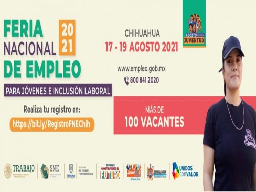 Noticias de Chihuahua.- En el marco del mes de la juventud, el Gobierno del Estado de Chihuahua, a través de la Secretaría del Trabajo y Previsión Social (STPS), y en colaboración con la Dirección de Desarrollo Humano y Educación del Municipio de Chihuahua invita al empresariado chihuahuense a participar los próximos 16, 17 y 18 de agosto en la Feria de Empleo Virtual para Jóvenes 2021.
