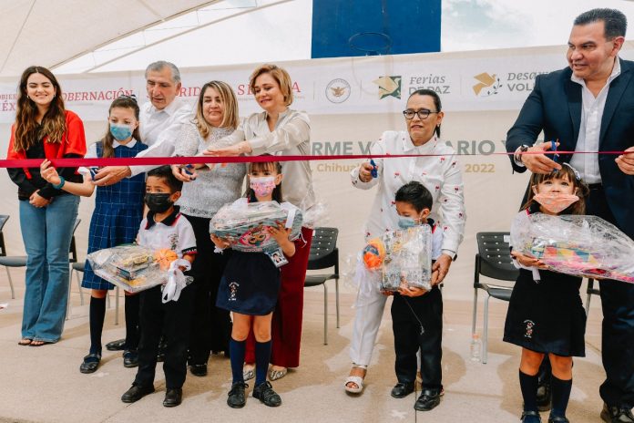 El evento tuvo verificativo en la Escuela primaria Aurora Reyes Flores, en la colonia Jardines del Aeropuerto, donde la Gobernadora expresó su agradecimiento a los titulares de Gobernación y de Seguridad Ciudadana, con quienes trabaja en una atención especial para la fronteriza Ciudad Juárez.