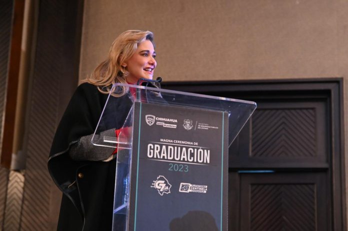 “Hoy damos un paso adelante en la estrategia de seguridad de Chihuahua”, dijo la mandataria estatal, quien reconoció a los graduandos por concluir sus estudios en formación inicial, licenciatura, maestría y doctorado, en el Instituto Estatal de Seguridad Pública.