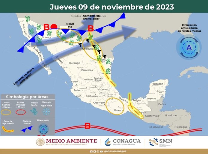 Noticias de Chihuahua.- La Coordinación Estatal de Protección Civil (CEPC) informa que de acuerdo al reporte del Servicio Meteorológico Nacional (SMN), se espera para el jueves 9 de noviembre el arribo del Frente Frío número 9 que traerá consigo nubosidad en gran parte del estado y lluvias de 1.5 a 25 milímetros en algunos municipios de la entidad.