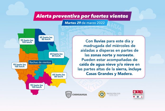 Las ráfagas podrían superar los 100 kilómetros por hora.