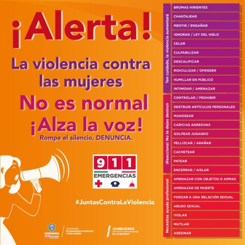 Es importante recordar que se mantiene la Alerta de Violencia en Género contra las Mujeres, específicamente para los municipios de Juárez, Chihuahua, Cuauhtémoc, Parral y Guadalupe y Calvo, donde en el 2022 fueron atendidas 2 mil 314 mujeres más que en 2021.