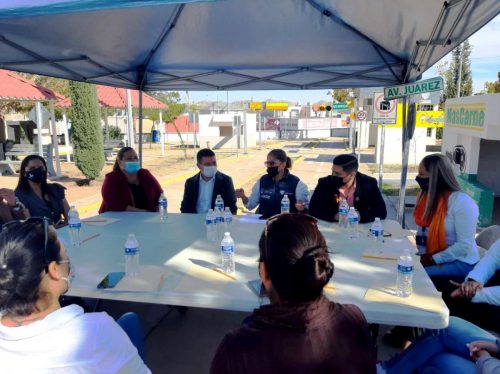 La primera mesa de trabajo se efectuó con representantes de la comunidad “Pistolas” Meneses, que integran habitantes de las colonias Niños Héroes, Juan Güereca, Magisterial Solidaridad y Vicente Güereca, voluntarios, una asociación civil, negocios de distintos giros y representantes de escuelas del nivel básico.