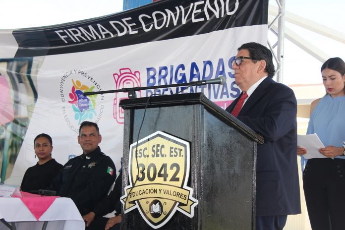El convenio fue signado por el secretario de Educación y Deporte, Javier González Mocken y el secretario de Seguridad Pública Estatal, Gilberto Loya Chávez, en las instalaciones de la Escuela Secundaria No.3042, en Ciudad Juárez.