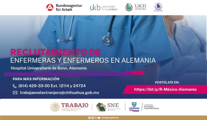 Noticias de Chihuahua.- Gobierno del Estado, a través de la Secretaría del Trabajo y Previsión Social (STPS) y el Servicio Estatal de Empleo Chihuahua, invitan a profesionistas en enfermería, a participar en la convocatoria para trabajar en Alemania.