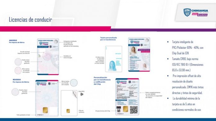 El plástico cuenta con un laminado holográfico del escudo de Chihuahua y entre las medidas de seguridad más importantes destaca la impresión especial del nombre del titular de la tarjeta que sólo podrá ser visto con una luz de rayos ultravioleta.