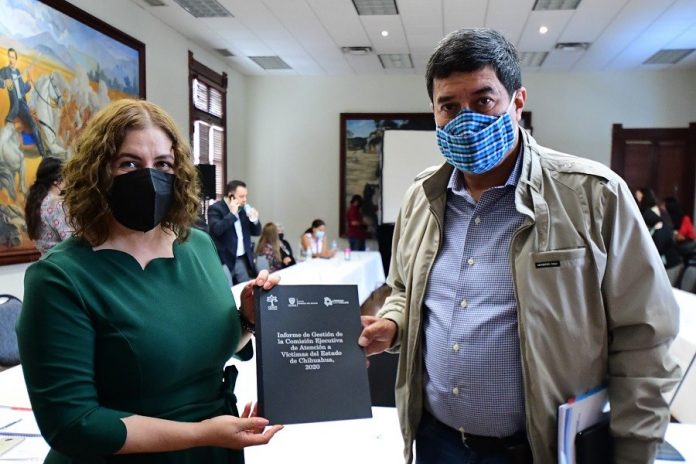 En el acto efectuado en el Salón Sacramento de Palacio de Gobierno, la comisionada ejecutiva de Atención a Víctimas del Estado de Chihuahua, Irma Villanueva Nájera, destacó en su informe correspondiente al 2020, que se brindaron 84 mil 750 servicios victimológicos integrales a un total de 46 mil 161 personas.