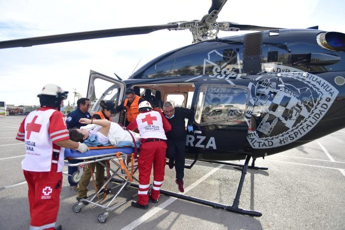 El traslado se efectuó a bordo del Helicóptero Bell 429 que es operado por pilotos de la SSPE. La aeronave está equipada con tecnología de vanguardia, lo que garantizó un traslado seguro y rápido, que tuvo como destino final el Hospital General de la ciudad de Chihuahua.