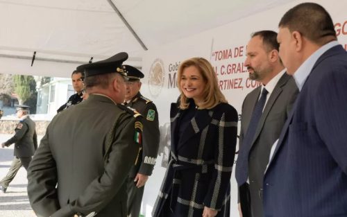 Noticias de Chihuahua.- La gobernadora Maru Campos acudió como invitada de honor, a la ceremonia de toma de posesión y protesta de Bandera, del General de Brigada Diplomado de Estado Mayor, Jorge Alejandro Gutiérrez Martínez, como nuevo comandante de la 42 Zona Militar, con sede en Hidalgo del Parral.