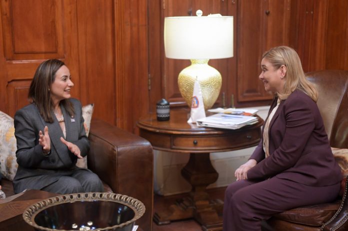 Noticias de Chihuahua.- La gobernadora Maru Campos sostuvo esta tarde en Palacio de Gobierno, una reunión de trabajo con la magistrada presidenta del Tribunal Superior de Justicia del Estado, Marcela Herrera, en el marco del trabajo de colaboración que se mantiene entre ambos poderes.