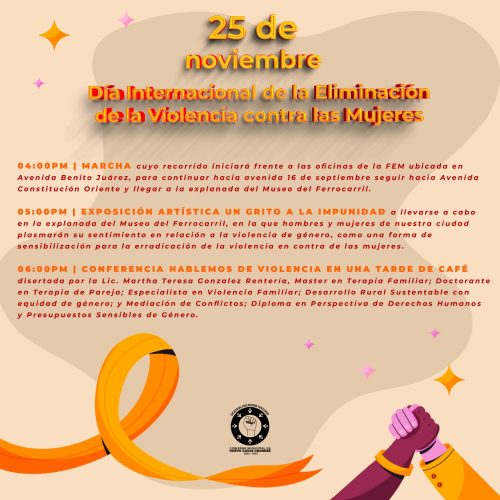 Nuevo Casas Grandes.- El gobierno municipal de Nuevo Casas Grandes, a través del Instituto Municipal de las Mujeres (IMM) y en coordinación con la Dirección de Cultura Municipal, el Centro de Atención a la Violencia contra las Mujeres, y la asociación Agenda de Mujeres, invita a la ciudadanía a participar en las actividades programadas para este 25 de noviembre de 2024, con motivo del Día Internacional de la Eliminación de la Violencia contra las Mujeres.