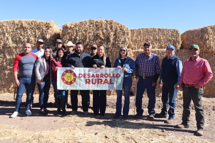 Nuevo Casas Grandes. – La tarde de hoy la presidenta municipal Lic. Edith Escárcega, acompañada de la directora de desarrollo rural, Lizeth Corea; el regidor de desarrollo rural, Marco Antonio Pérez; la Sindica y algunos regidores, encabezó la entrega de 300 pacas de rastrojo de maíz subsidiado en el marco del programa estatal “Apoyo para la Sequía”.