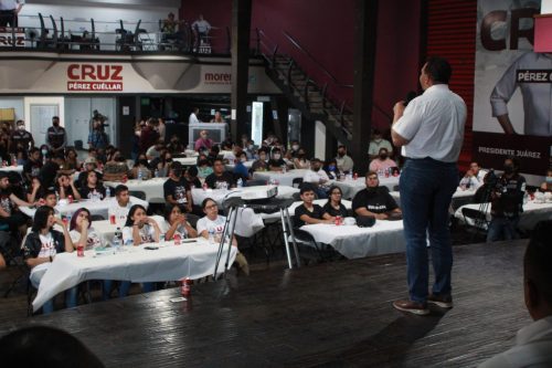 Noticias de Ciudad Juárez.- La casa de campaña de Cruz Pérez Cuéllar se llenó de jóvenes para realizar un evento en conmemoración al día del estudiante; el candidato a la presidencia municipal de Ciudad Juárez por Morena en la Coalición Juntos Haremos Historia en Chihuahua, los felicitó y entabló un dialogo en torno a la importancia de escucharlos y que sean parte de la administración municipal que estará a su cargo.