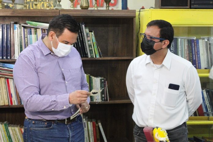 El Senador Pérez Cuéllar, entabló una conversación sobre algunos hechos históricos de la ciudad, del estado y del país, mientras el historiador le mostró algunos artículos que forman parte de su colección.