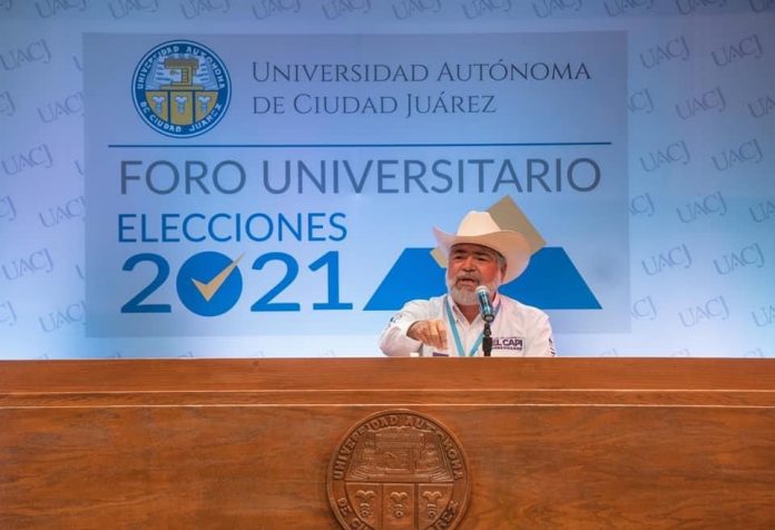 Ciudad Juárez, Chih.- El candidato a gobernador del Estado por el Partido Encuentro Social (PES), Luis Carlos Arrieta, participó en el Foro de la Universidad Autónoma de Ciudad Juárez rumbo a las elecciones del 2021, ofreciendo en primer instancia transporte y becas para los estudiantes de nivel superior.