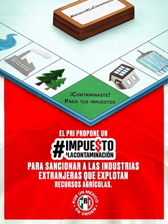 En un campaña de comunicación en redes sociales, con la etiqueta #FuturoRevolucionario, la dirigencia nacional del partido, encabezada por el Presidente Alejandro Moreno, subrayó que “proponemos ampliar los impuestos ecológicos para proteger nuestras aguas, suelo y subsuelo”.