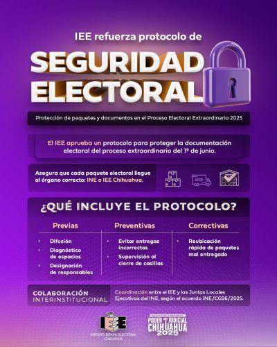 Este protocolo busca asegurar que, durante y después de la jornada electoral del próximo 1º de junio, todos los materiales electorales sean canalizados correctamente al órgano electoral que les corresponde, ya sea el Instituto Nacional Electoral (INE) o algún órgano desconcentrado del Instituto Estatal Electoral.