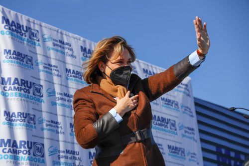 Ciudad Juárez. – Maru Campos Galván, arrancó este domingo su precampaña para ser la abanderada del Partido Acción Nacional a la gubernatura de Chihuahua, en Ciudad Juárez, con el respaldo de más de mil juarenses, quienes se dieron cita en el estacionamiento del estadio Benito Juárez.