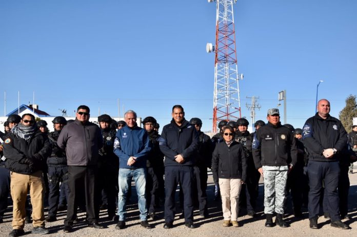 El despliegue de los más de 400 elementos de distintas corporaciones, inició en la caseta de Villa Ahumada y fue encabezado por el secretario de Seguridad Pública del Estado, Gilberto Loya.