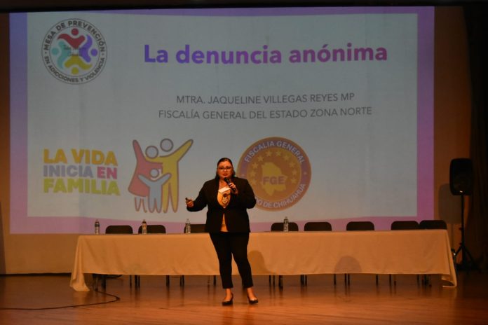 Personal de la Fiscalía Especializada en Atención a Mujeres Víctimas del Delito por Razones de Género, habló del tema “El Deber de Denunciar”; la Fiscalía General de Distrito Norte con “La Denuncia Anónima”; el Grupo de Orientación Escolar Chihuahuense expuso el tema “Intervención Informativa Educativa” y el Centro de Justicia para las Mujeres habló sobre la “Intervención Oportuna de Padres, Madres y/o Tutores en el Acompañamiento Formativo de Educación Básica”.