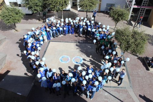 Noticias de Chihuahua.- Más de 100 personas entre derechohabientes, público en general, personal médico y administrativo de Pensiones Civiles del Estado (PCE) formaron un círculo azul, símbolo de la unidad en el marco del Día Mundial de la Diabetes, en la Plaza de la Salud de la institución, a fin de concientizar a la población.