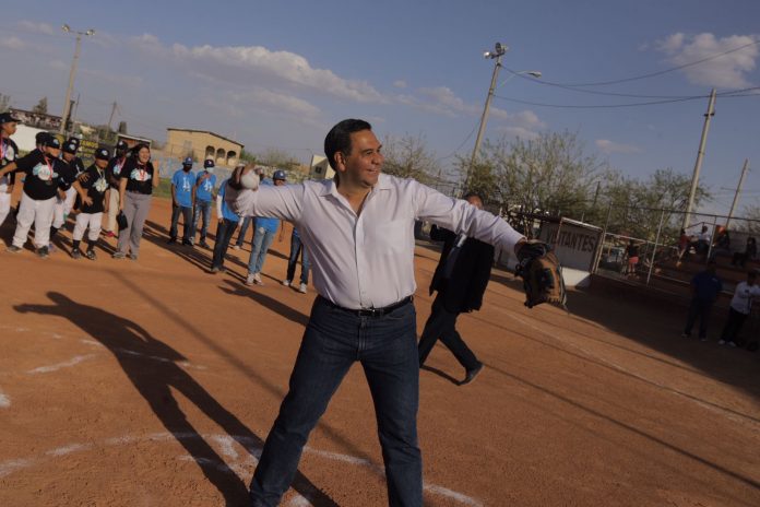 Ciudad Juárez.- El Presidente Municipal, Cruz Pérez Cuéllar, hizo el lanzamiento de la primera pelota en la ceremonia de inauguración de la Liga de béisbol infantil y juvenil Carlos Amaya, la cual arrancó su temporada 2022 y que llevará por nombre “Saúl López Rodríguez”.