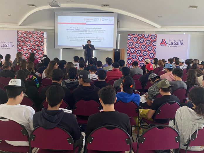Noticias de Chihuahua.- El Instituto Chihuahuense de las Mujeres (ICHMujeres), a través de su Departamento de Educación y Sensibilización en Género, visitó la Universidad La Salle en la ciudad de Chihuahua para concientizar a 400 jóvenes sobre roles, estereotipos y mitos del amor romántico, con motivo de la Semana Cultural.