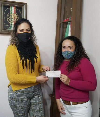 Casas Grandes. – La alcaldesa Yesenia Reyes Calzadias, entregó un apoyo económico a Susana Pérez Carreón, encargada del proyecto «Acción Poética», quién lo solicitó previamente para rescatar espacios en abandono.