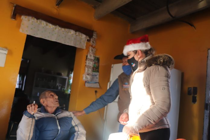 Cuidando las medidas sanitarias, la alcaldesa y su equipo entregaron cenas navideñas, así como dulces y juguetes a los niños.
