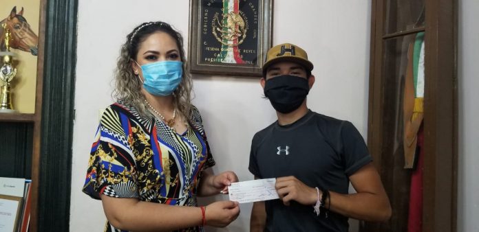 Casas Grandes.- La alcaldesa del Pueblo Mágico Yesenia Reyes Calzadias, entregó el día de hoy un apoyo económico al joven Luis Antonio Galaz, quien participará en el Campeonato Nacional de béisbol categoría Jr. en la ciudad de Monterrey, Nuevo León.