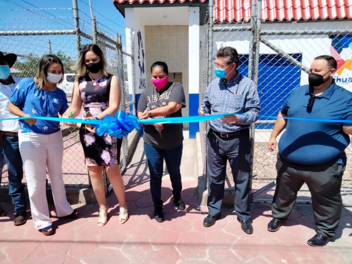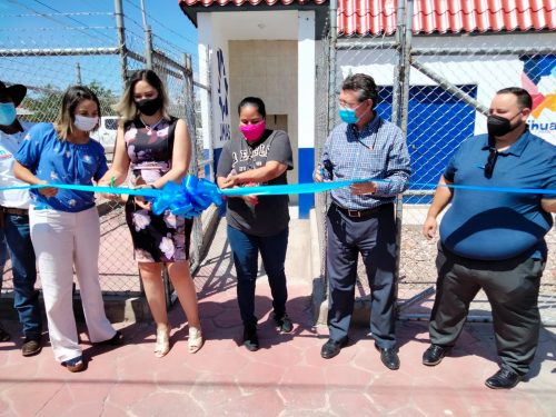 El director ejecutivo de la JCAS, Oscar Ibáñez y la alcaldesa Yesenia Reyes Calzadías encabezaron la ceremonia de corte de listón, en compañía de la diputada Patricia Jurado Alonso, el director ejecutivo de la JMAS, Víctor Hugo Hernández, y personas usuarias.