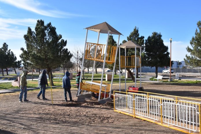 Nuevo Casas Grandes.- Como parte de la aplicación del recurso del Presupuesto Participativo, la Presidencia Municipal de Nuevo Casas Grandes, llevará a cabo la instalación de juegos infantiles en las áreas de la Macro Plaza Bicentenario y de la plaza Benito Juárez, así como en los parque de las colonias Obrera y Villahermosa, luego de haber concluidos los trabajos el parque Extremo.